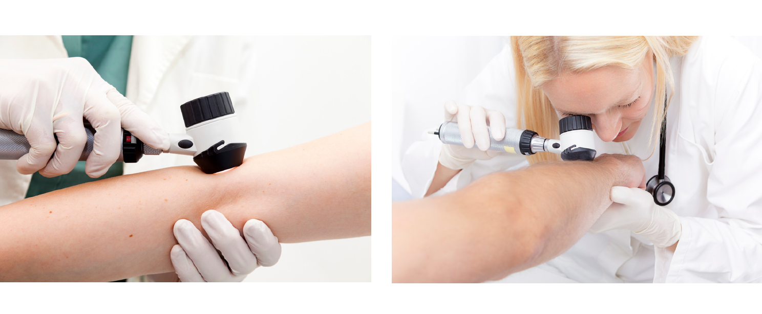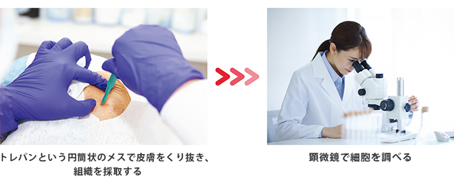 すべての病変をダーモスコピーだけで正確に診断できるわけではありません。確定診断のためには、病変の一部または全部を切除し、顕微鏡で組織を調べる「生検」が必要となる場合があります。